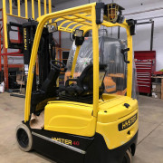 2014 Hyster with 4000lb capacity in great condition. This forklift has a three stage full free lift mast. The mast lift is 187” and the lowered height is 81”. It is equipped with side shifter and class 2-48” forks. It also has new paint job with original decals. The forklift has LED lamps at the front, Back-up alarm, flashing strobe lamp, blue laser lamp, a load guard, fingertip control etc. It has non-marking tires in great condition, so it has all modern and safety features in an affordable price range. We have 2 more identical trucks available. The truck has a good 48V battery and it holds the charge well. You will get a minimum of 3 hours or more run-time depends the type of work you do. We will provide a 600V – 3 phase the input charger as required. The forklift comes with safety certification and we will provide a 30 days parts only warranty all over the country. Delivery in GTA is included in the price.